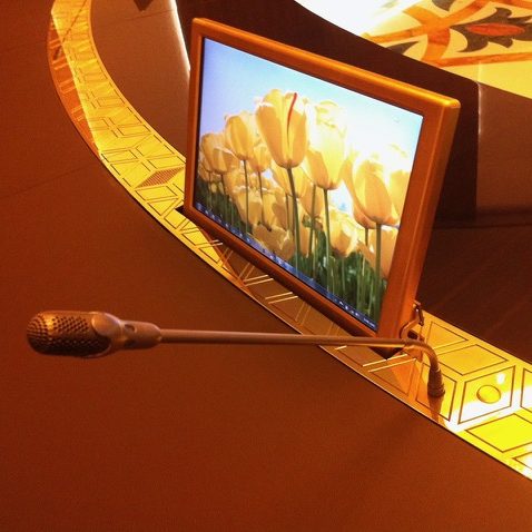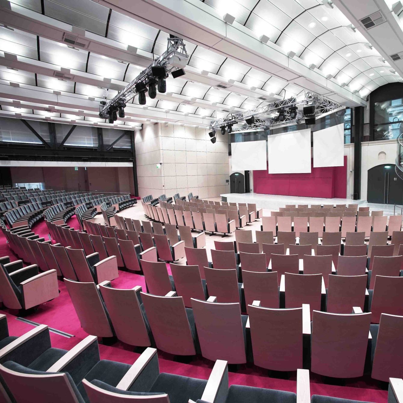La sonorisation est étudiée avec précision afin d’assurer une restitution claire et homogène de la voix et des contenus audio. Systèmes de diffusion, microphones et traitements acoustiques sont sélectionnés pour offrir un confort d’écoute optimal, favorisant la concentration et la qualité des échanges, quel que soit l’espace.